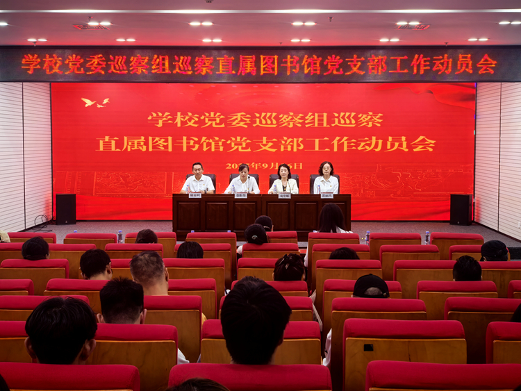党委第二巡察组全体成员、图书馆负责同志、全体馆员及学校部分学生代表参加会议。